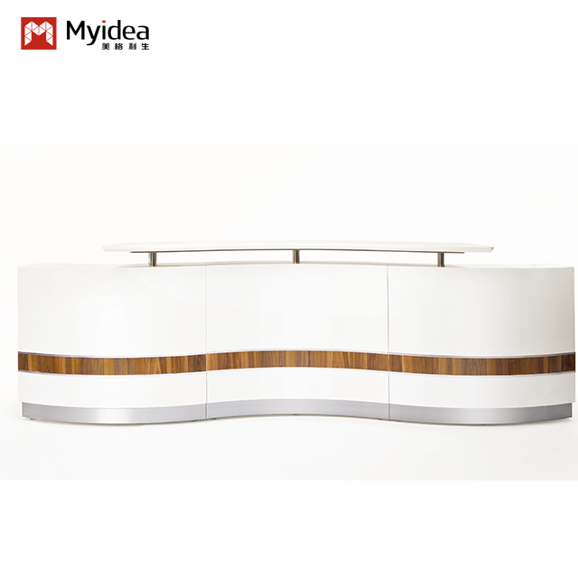 カーブした焼いた塗料のフロントデスク,会社バーカウンター,美容院,歯科クリニック,円形キャッシングカウンター,シンプルで近代的なレセプションデスク