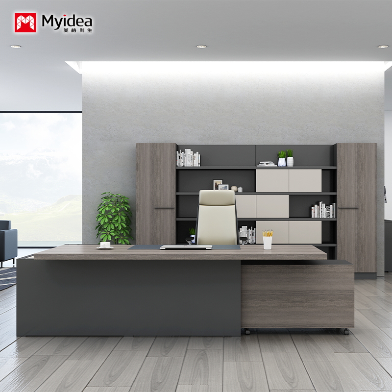 カスタマイズ可能なオフィス マネージャー スーパーバイザー デスク L字型独立オフィス デスク キャビネット付き 隠しワイヤーボックス マネージャー デスク