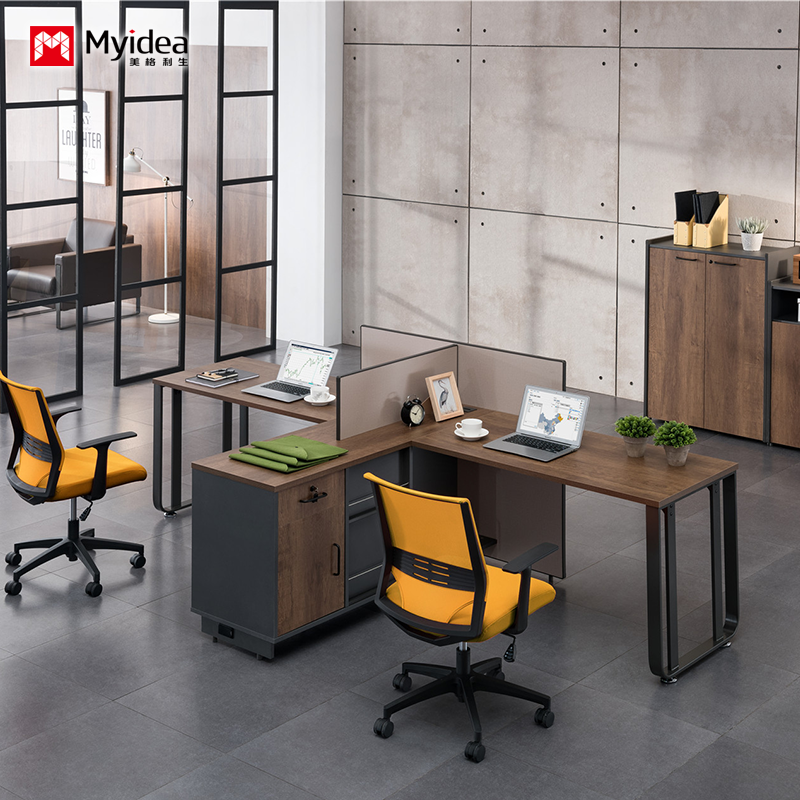 2人用オフィスデスク 鋼鉄の脚の収納用サイドキャビネット メラミンの板材で作られたスタッフデスク