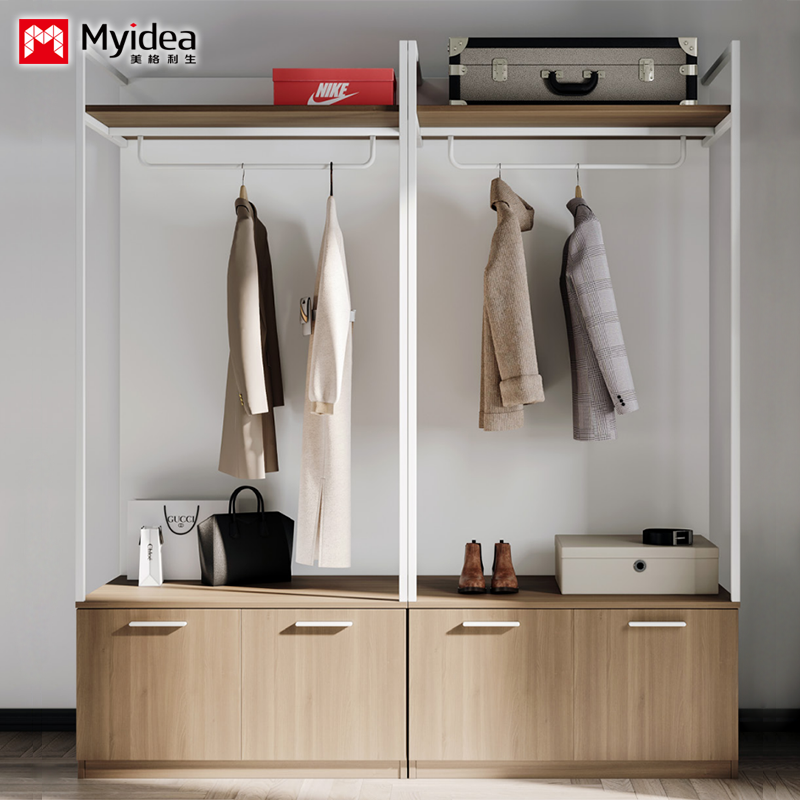 ホテルに適した デザイン ベッドルーム クローゼット 吊りついている棒 十分な収納スペース パネル 木製家具 家庭用またはリビングルーム サポート カスタマイズ