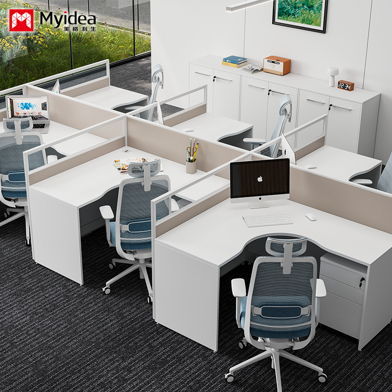 フォシャン 卸売 シングルパーソン L 型 スタッフ ライト カラー スクリーン カード スロット シンプル モダン スクリーン テーブル と 椅子 組み合わせ