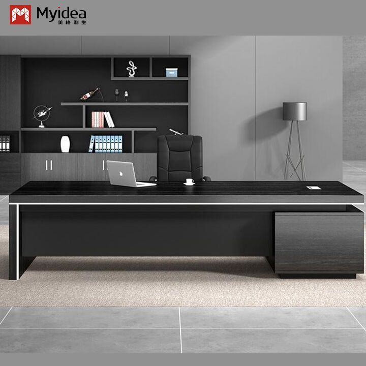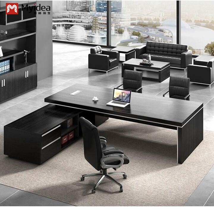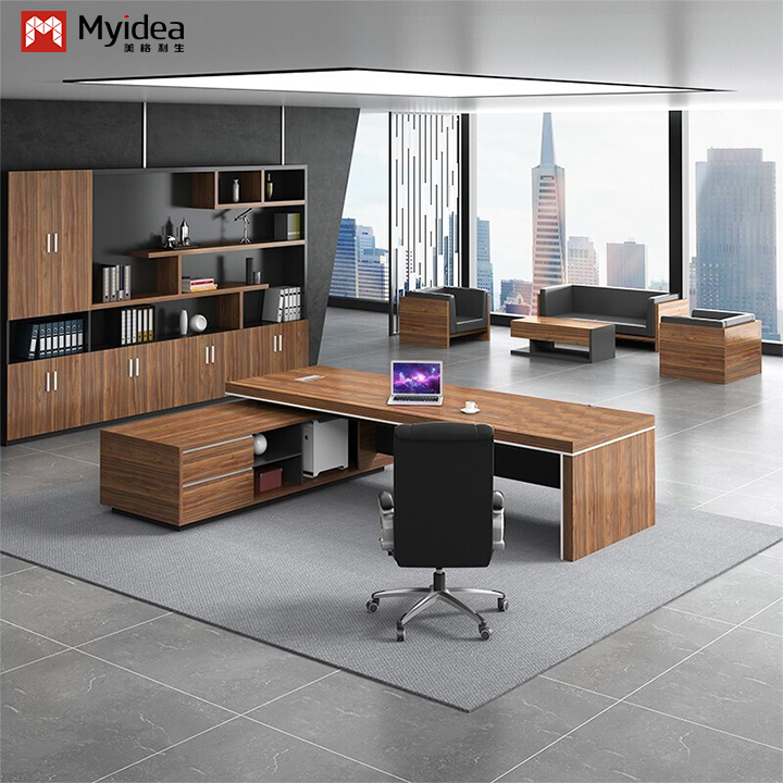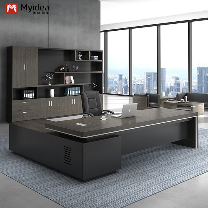 モダンで環境に優しいL字型エグゼクティブコンピューターデスク、大容量収納サブキャビネット